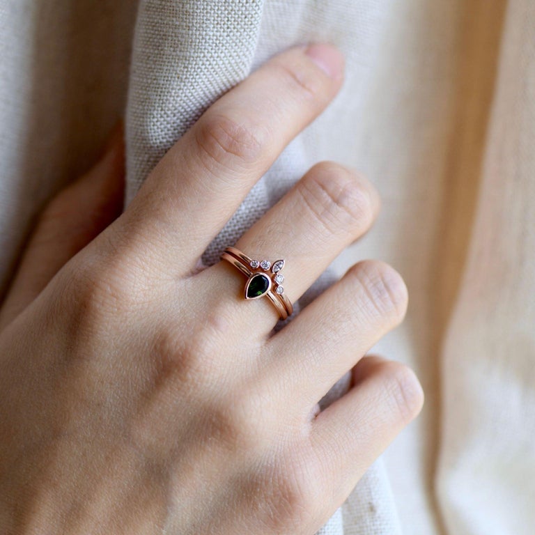 Customizable Green Tourmaline Teardrop Ring In 14 Karat Rose Gold With Diamond Ring Guard For Sale At 1stdibs Rose Gold Teardrop Ring